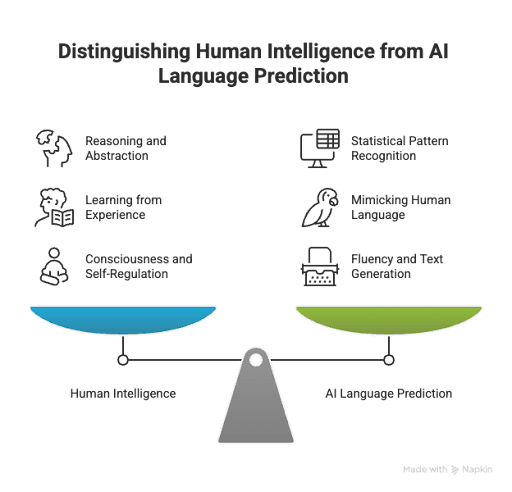 Psychologists define intelligence as the general mental ability that enables purposeful behavior, abstract thought, and learning through experience. This definition presupposes consciousness and self-regulation capacities that artificial models lack. Statistical processing power and cognitive ability are not equivalent. While AI can simulate reasoning, it does not possess insight, motivation, or awareness.