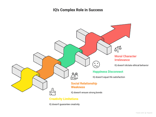 Conversely, a high IQ does not guarantee anything. Intelligence opens doors, but doesn't force people to walk through them. Plenty of high-IQ individuals underachieve due to a lack of motivation, poor work habits, or personal challenges. Think of IQ as a tailwind; it makes many things easier, but it's not a substitute for effort, persistence, or good decision-making.