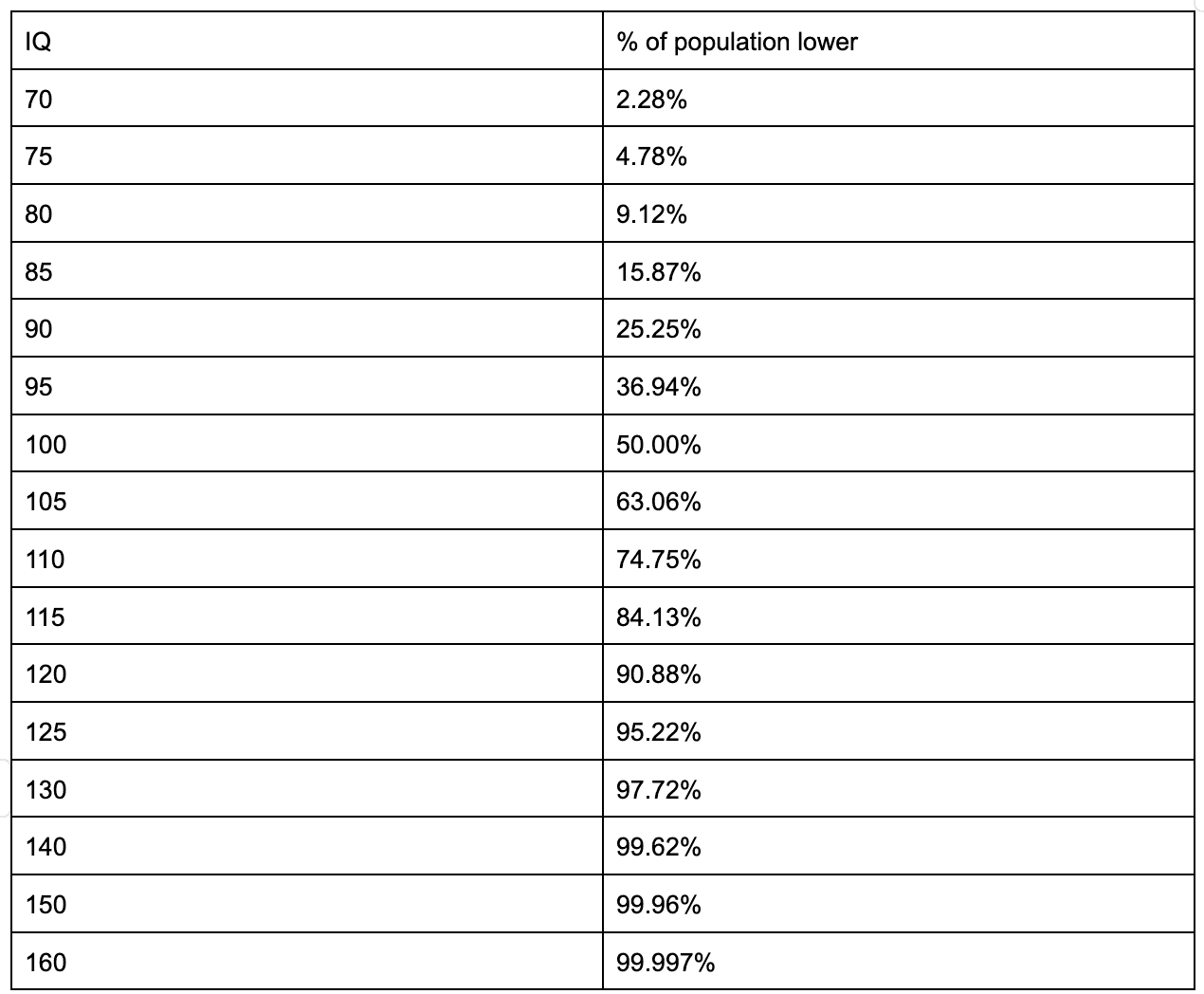 Is 120 IQ good? What about 130 or 160? See exactly what percentage of the population you outrank using our detailed IQ percentile table.